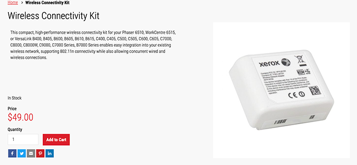 For example, this Xerox Wi-Fi Connectivity Kit sells for $49: